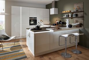 Moderne Designküchen, die sich wundervoll in Ihr bestehendes Wohnkonzept integrieren, lassen sich natürlich in den unterschiedlichsten Formen und Ausführungen realisieren.