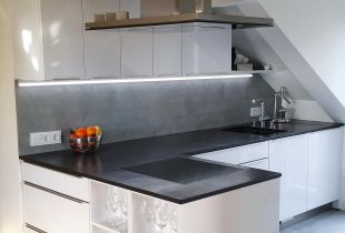 Wir ermöglichen für Ihre Designküche moderne Fronten und Paneele in Betonoptik, Granit, Keramik und Glas.
