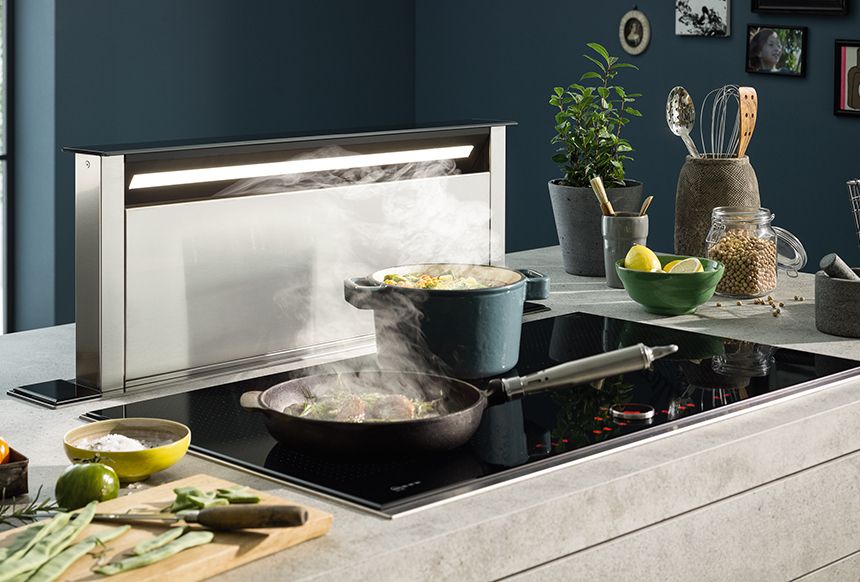 Saugen Sie die Kochdünste direkt ab, wo Sie entstehen: Mit der Hilfe von einer Haube oder einem passenden Dunstabzug halten Sie die Essensgerüchen fern von Ihrem Wohnraum.