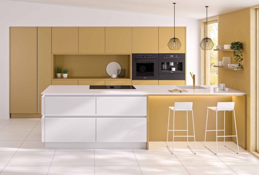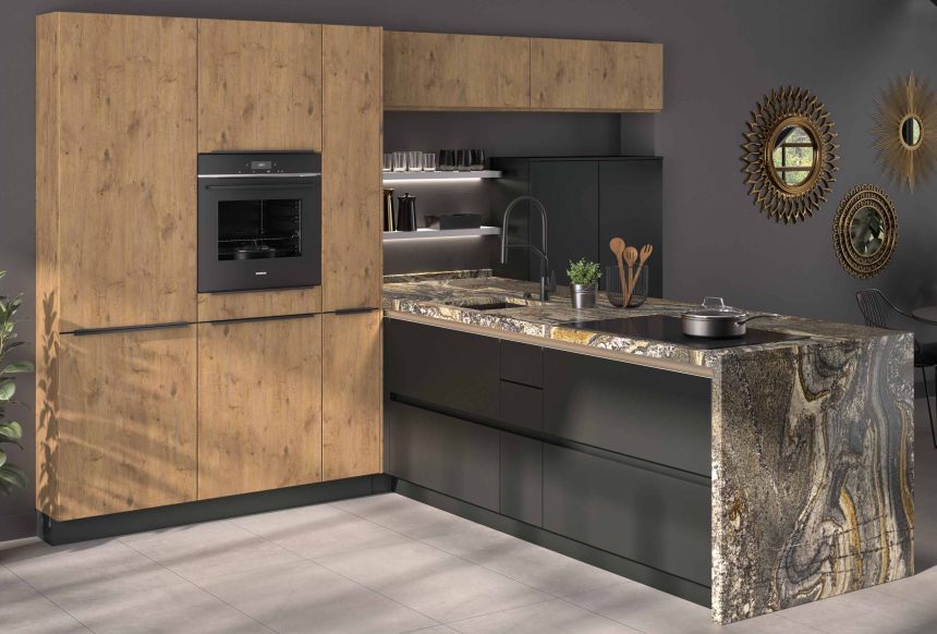 Matte Oberflächen für Küchenfronten und andere Ausstattung der Küche waren bereits in den vergangenen Jahren beliebt. Auch in 2024 setzt sich der Trend fort. So zieren matte Arbeitsplatten, Rückwände, Fronten, Spülbecken sowie Armaturen die Küche und setzen dezente, aber wirkungsvolle Highlights.