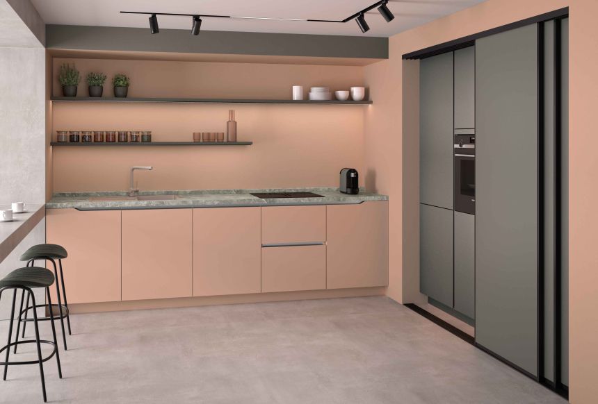 Dank der zurückhaltenden Optik lassen Sie sich ideal mit anderen Farben, Materialien und Mustern kombinieren. Kombinieren Sie matte und glänzende Oberflächen, um die Küche noch mehr in Szene zu setzen.